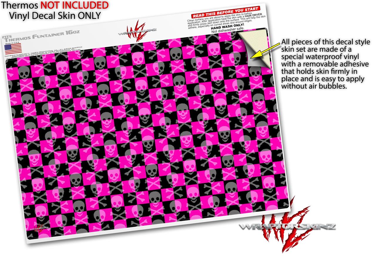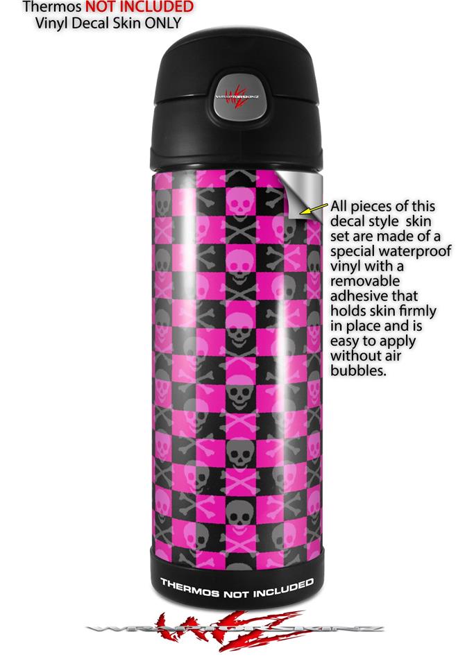 Skin Decal Wrap for Thermos Funtainer 16oz Bottle Skull and Crossbones Checkerboard (BOTTLE NOT INCLUDED) by WraptorSkinz
