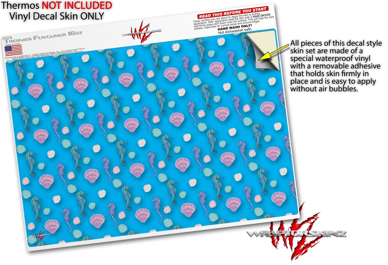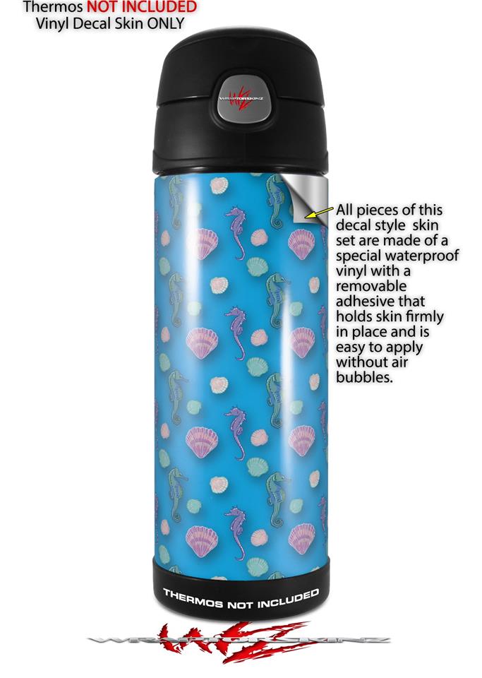 Skin Decal Wrap for Thermos Funtainer 16oz Bottle Seahorses and Shells Blue Medium (BOTTLE NOT INCLUDED) by WraptorSkinz