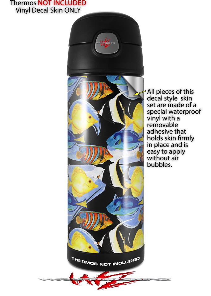 Skin Decal Wrap for Thermos Funtainer 16oz Bottle Tropical Fish 01 Black (BOTTLE NOT INCLUDED) by WraptorSkinz