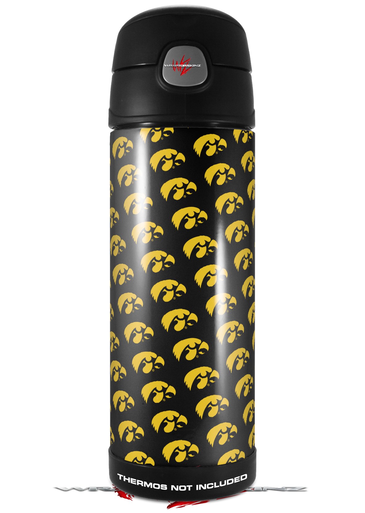 Skin Decal Wrap for Thermos Funtainer 16oz Bottle Iowa Hawkeyes Tigerhawk Tiled 06 Gold on Black (BOTTLE NOT INCLUDED) by WraptorSkinz