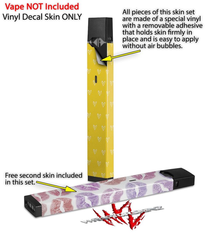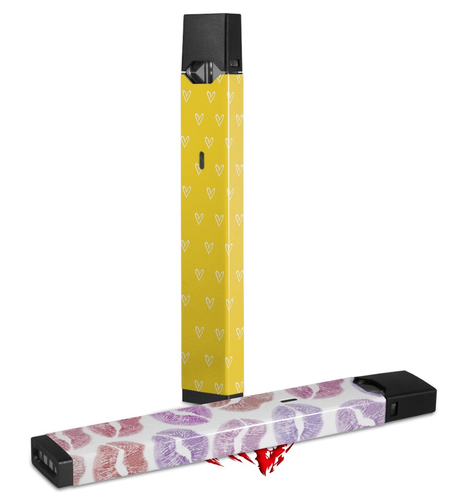 Skin Decal Wrap 2 Pack for Juul Vapes Hearts Yellow On White JUUL NOT INCLUDED