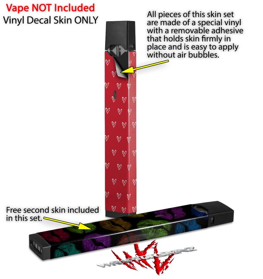 Skin Decal Wrap 2 Pack for Juul Vapes Hearts Red On White JUUL NOT INCLUDED
