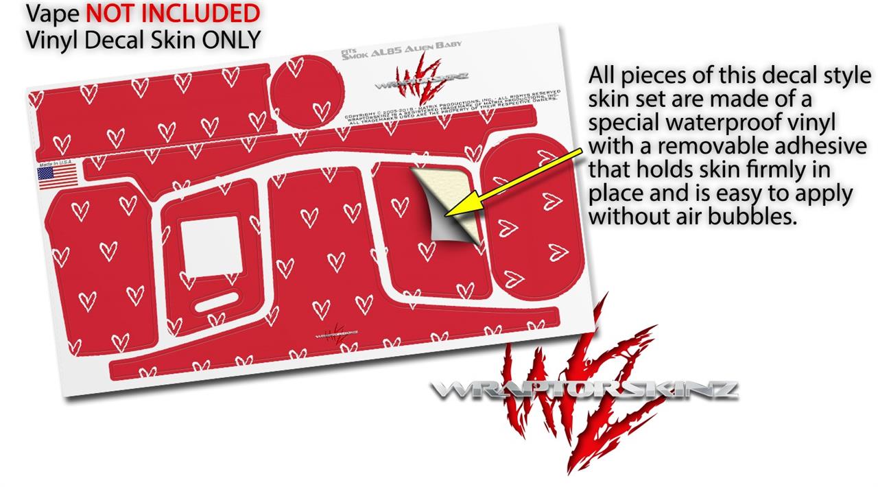 Skin Decal Wrap for Smok AL85 Alien Baby Hearts Red On White VAPE NOT INCLUDED