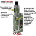 WraptorSkinz® skin wraps are printed using superb photo quality designs and vibrant colors printed with special fade resistant inks that last even in direct sun for years. WraptorSkinz are a composite of two layers of commercial grade materials. The bottom layer is a soft, flexible vinyl with a special removable adhesive that is easily positioned, applied without air bubbles. Next we print the bottom layer with UV protected, fade resistant inks that deliver superb photo quality designs in vibrant colors. Finally we bond a professional grade laminate over the entire skin adding a glossy protective finish. This product is not affiliated with or endorsed by the Smok brand.