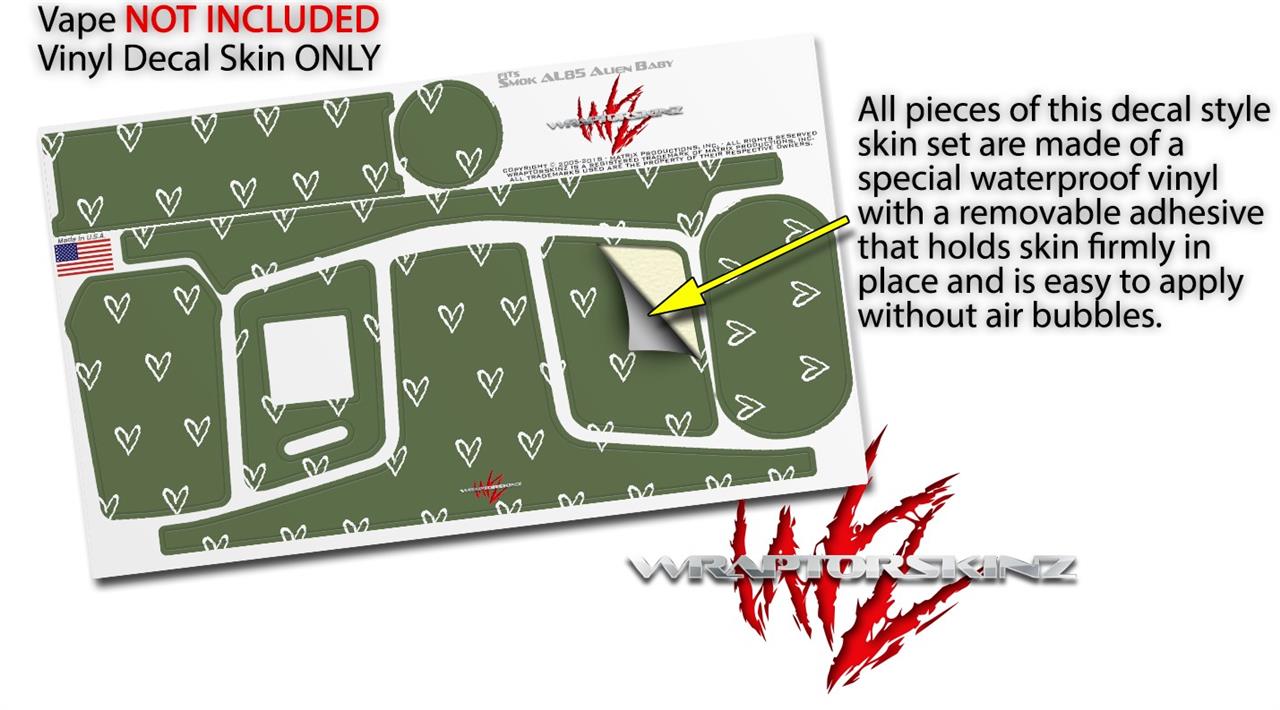 Skin Decal Wrap for Smok AL85 Alien Baby Hearts Hunter Green VAPE NOT INCLUDED