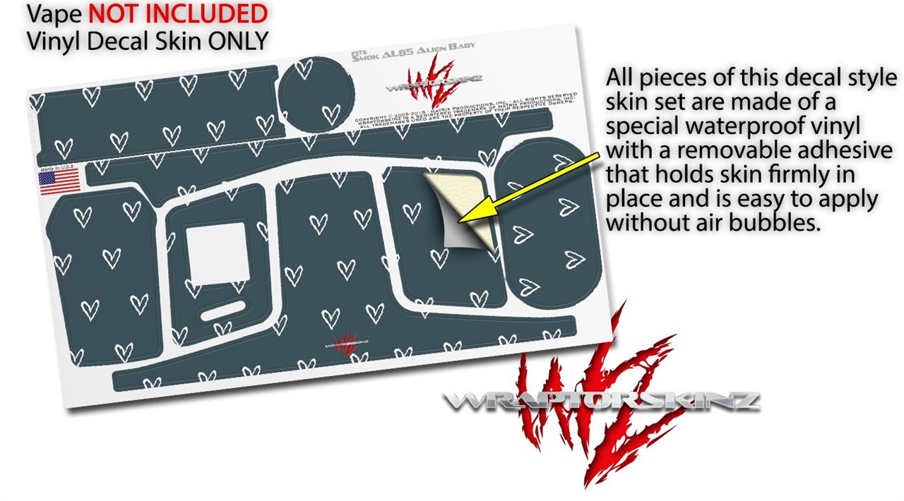Skin Decal Wrap for Smok AL85 Alien Baby Hearts Dark Blue On White VAPE NOT INCLUDED