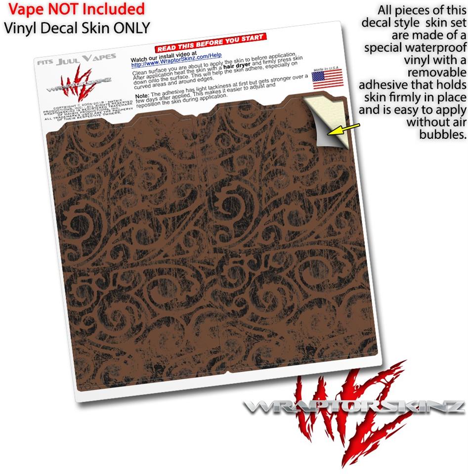 Skin Decal Wrap 2 Pack for Juul Vapes Folder Doodles Chocolate Brown JUUL NOT INCLUDED