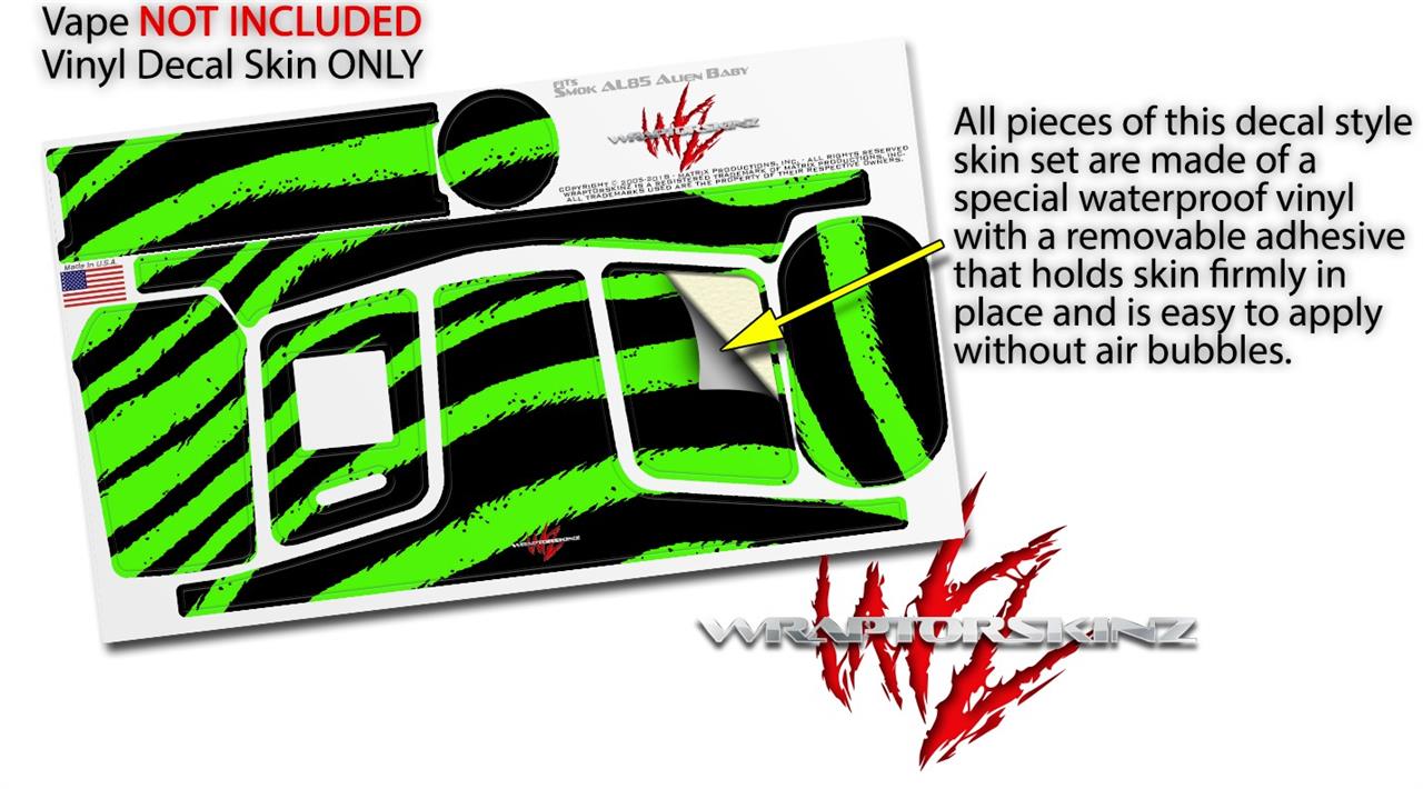 Skin Decal Wrap for Smok AL85 Alien Baby Zebra Green VAPE NOT INCLUDED
