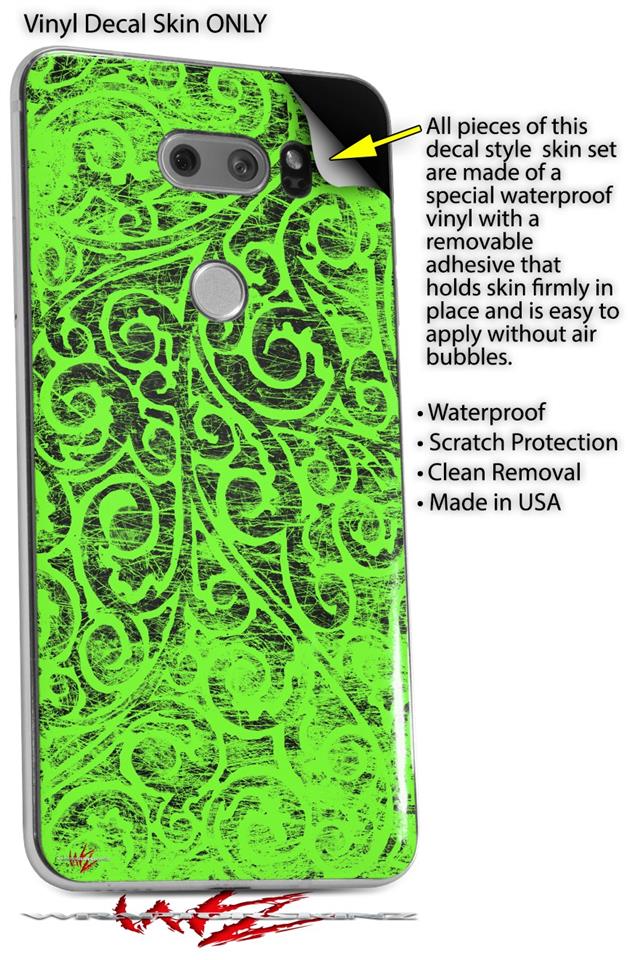 Skin Decal Wrap for LG V30 Folder Doodles Neon Green