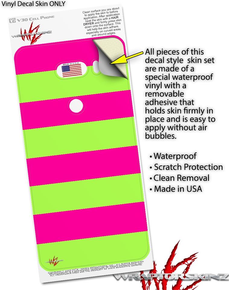 Skin Decal Wrap for LG V30 Psycho Stripes Neon Green and Hot Pink