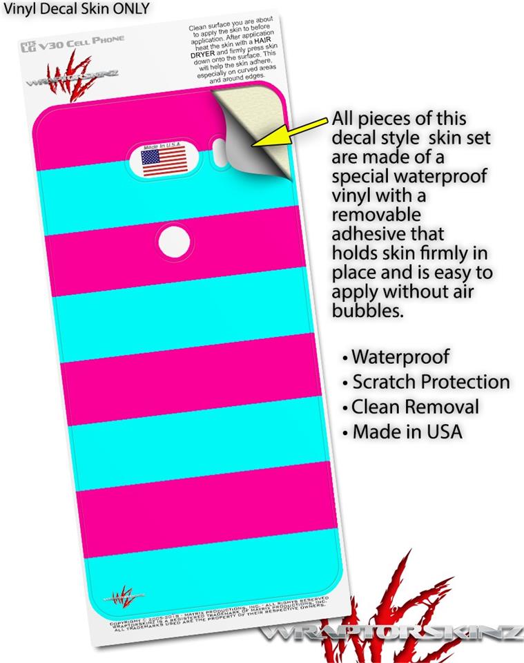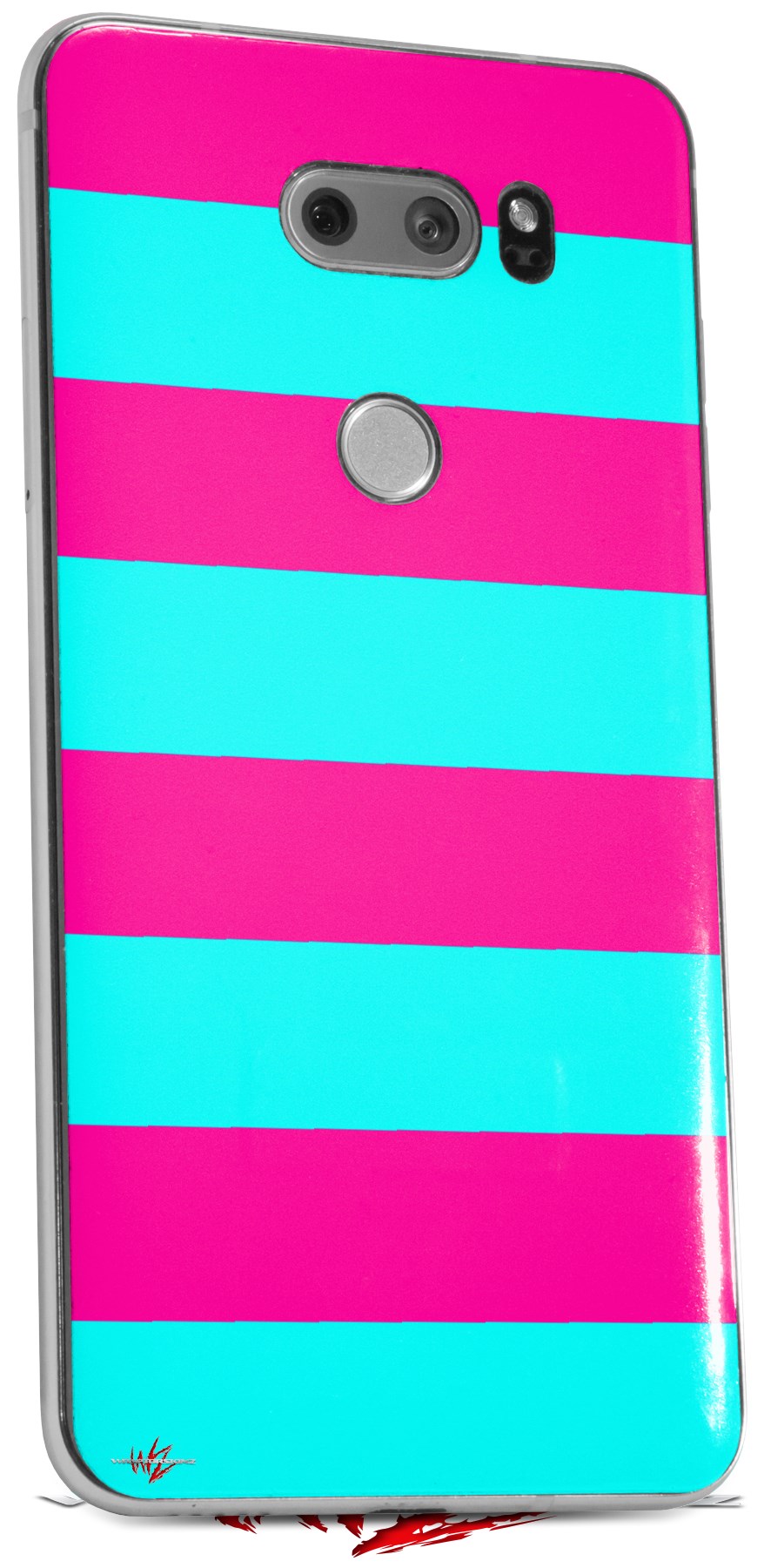 Skin Decal Wrap for LG V30 Psycho Stripes Neon Teal and Hot Pink