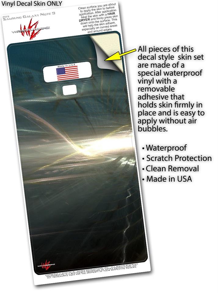 WraptorSkinz® skin wraps for the Samsung Galaxy Note 9 are printed using superb photo quality designs and vibrant colors printed with special fade resistant inks that last even in direct sun for years. WraptorSkinz are a composite of two layers of commercial grade materials. The bottom layer is a soft, flexible vinyl with a special removable adhesive that is easily positioned, applied without air bubbles. Next, we print the bottom layer with UV protected, fade resistant inks that deliver superb photo quality designs in vibrant colors. Finally, we bond a professional grade laminate over the entire Galaxy Note 9 skin adding a glossy protective finish. This product is not affiliated with or endorsed by Samsung.
