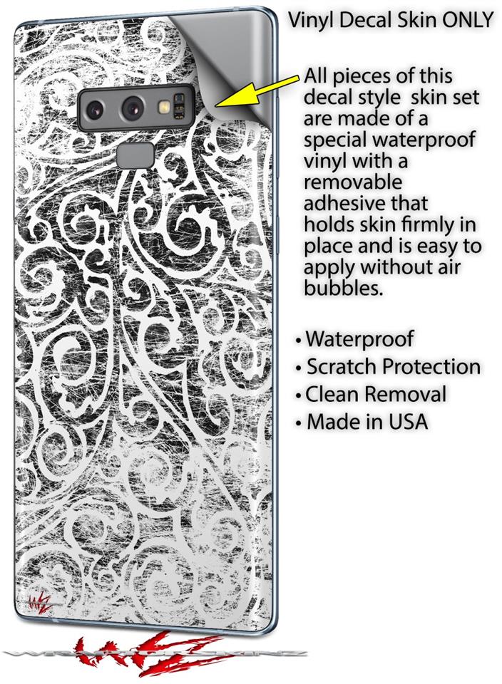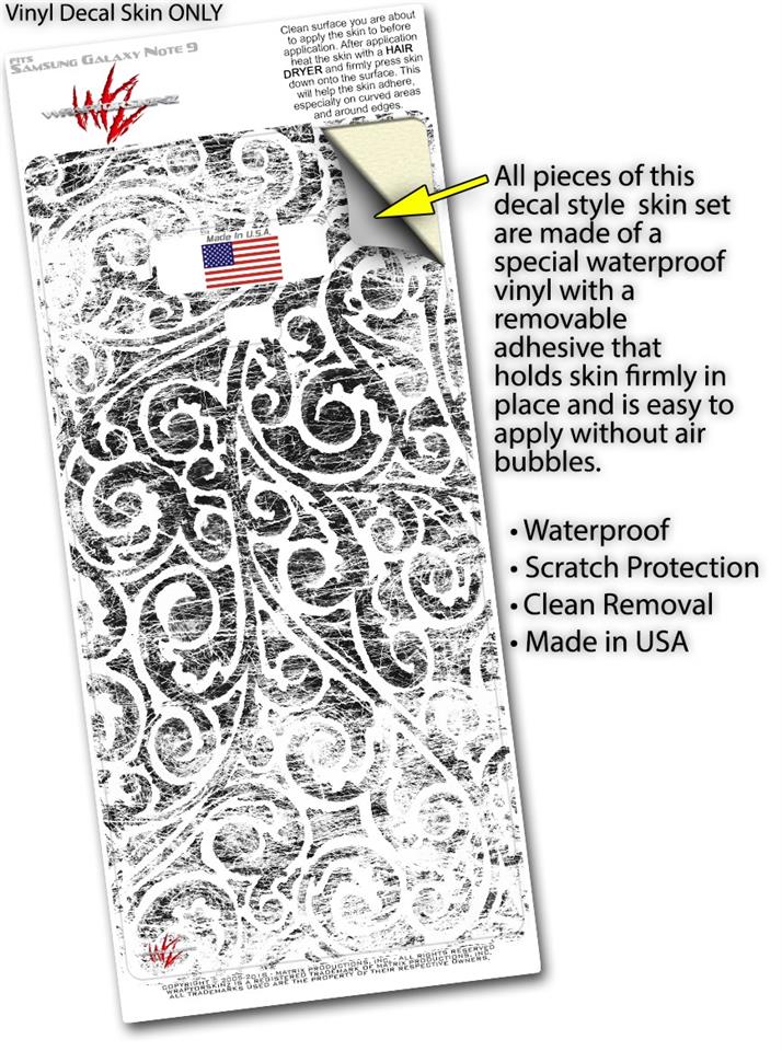 • Decal style vinyl skin covers back and part of the sides of Samsung Galaxy Note 9 - Not a hard case - Fits well with most Clear and TPU cases.