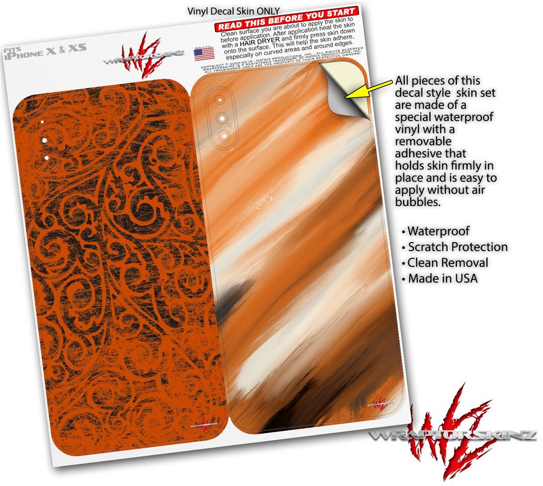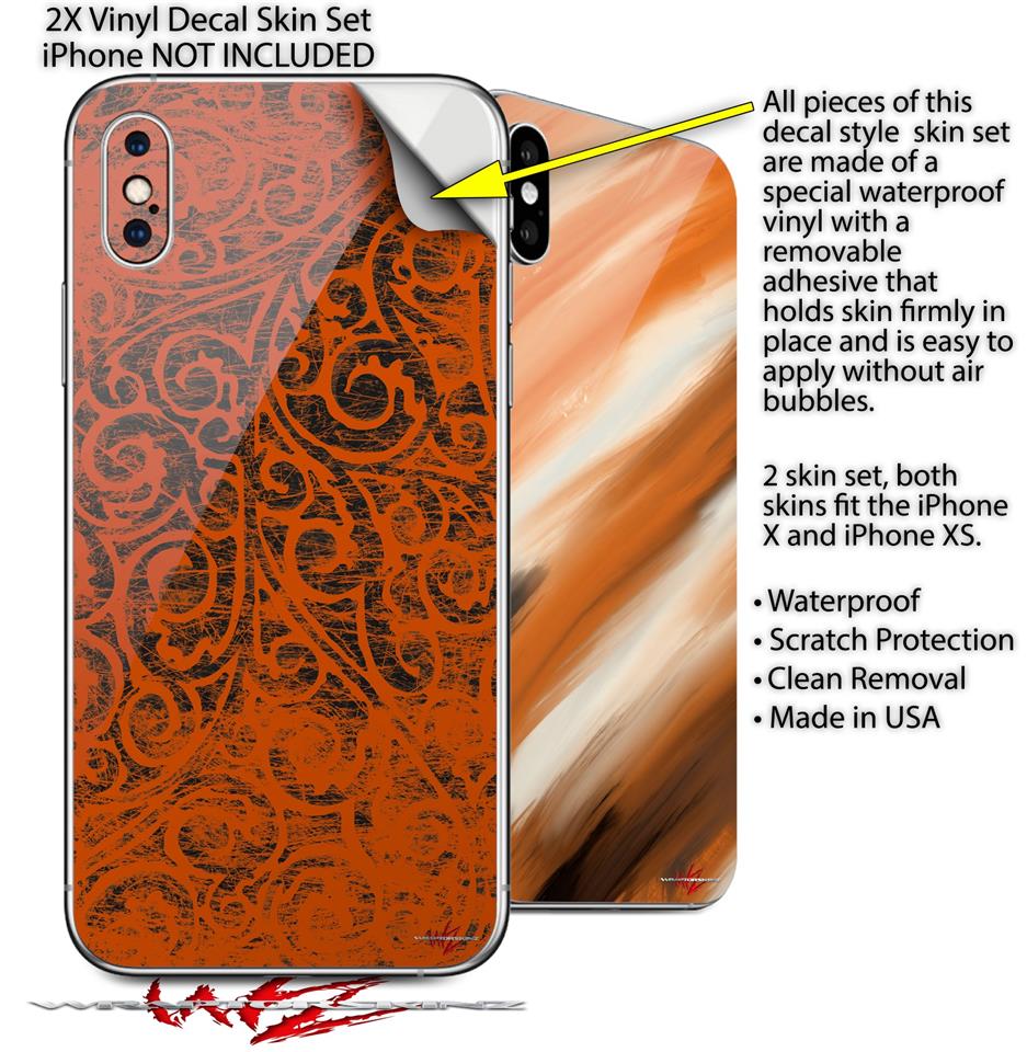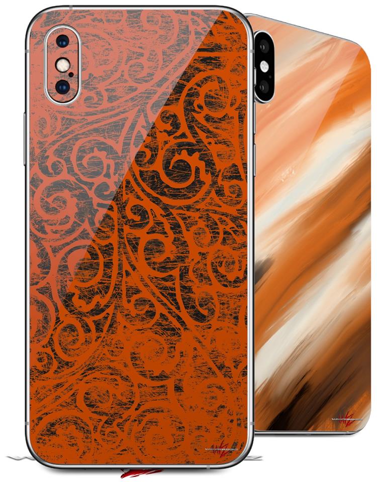 2 Decal style Skin Wraps set for Apple iPhone X and XS Folder Doodles Burnt Orange