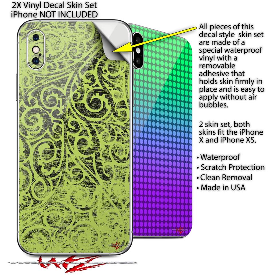 2 Decal style Skin Wraps set for Apple iPhone X and XS Folder Doodles Sage Green