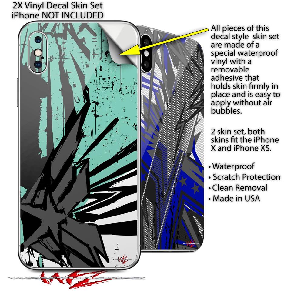 2 Decal style Skin Wraps set for Apple iPhone X and XS Baja 0040 Seafoam Green