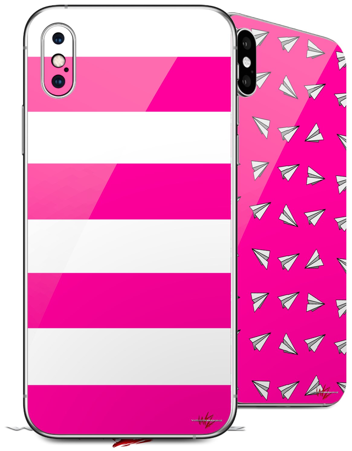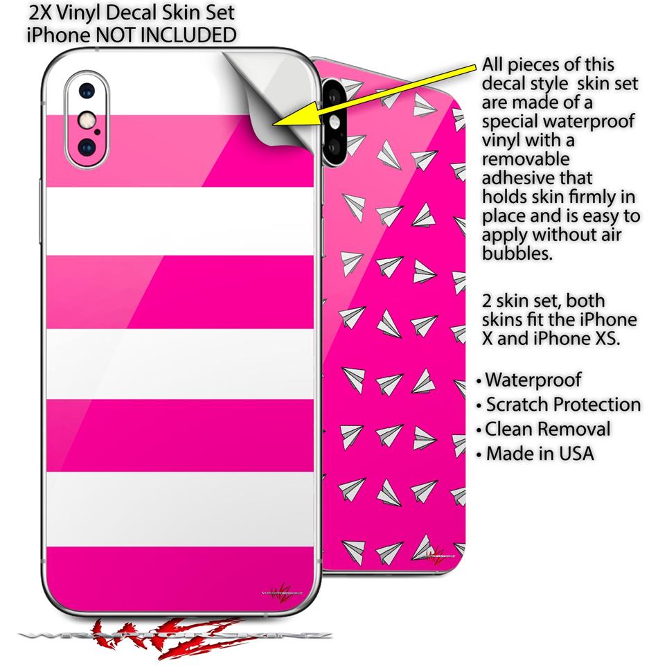 2 Decal style Skin Wraps set for Apple iPhone X and XS Psycho Stripes Hot Pink and White