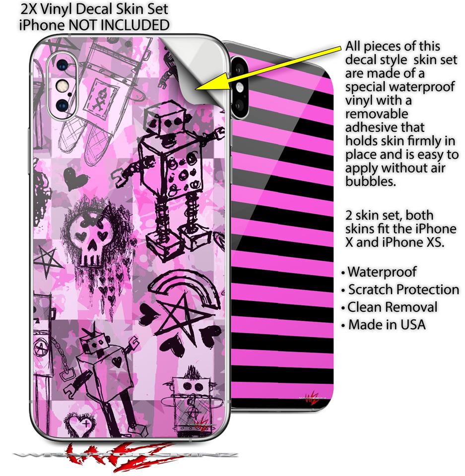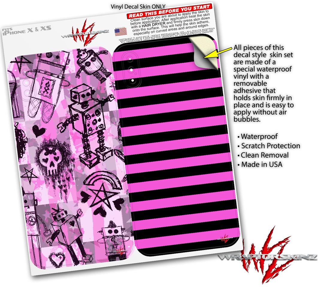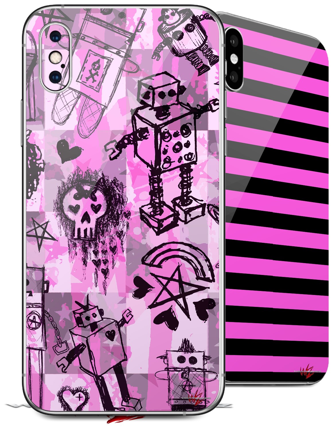 2 Decal style Skin Wraps set for Apple iPhone X and XS Scene Kid Sketches Pink