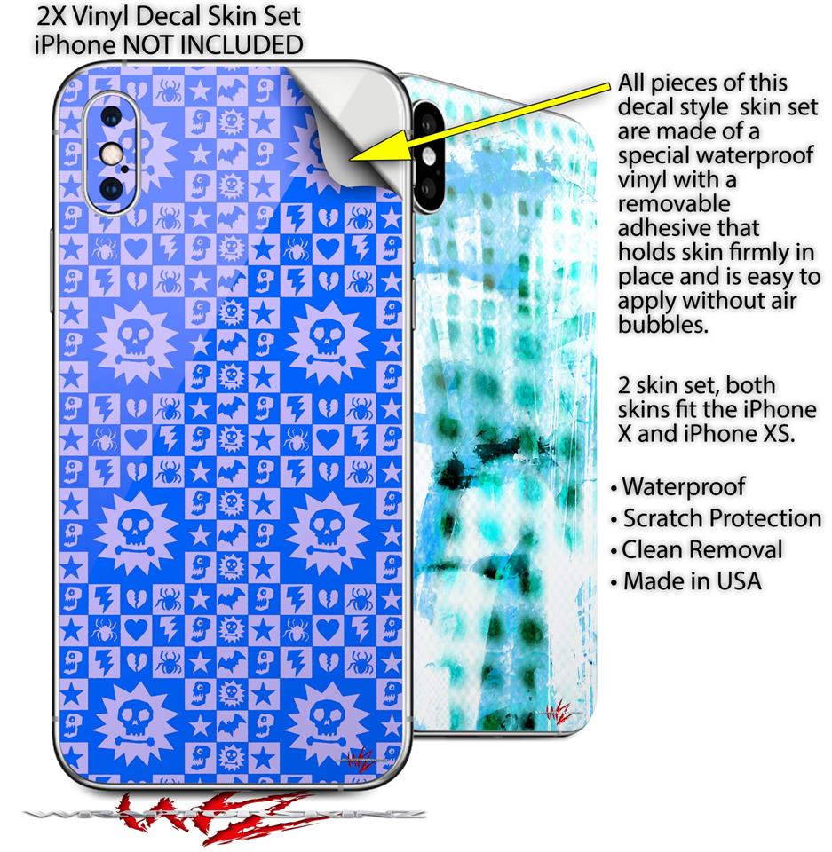 2 Decal style Skin Wraps set for Apple iPhone X and XS Gothic Punk Pattern Blue