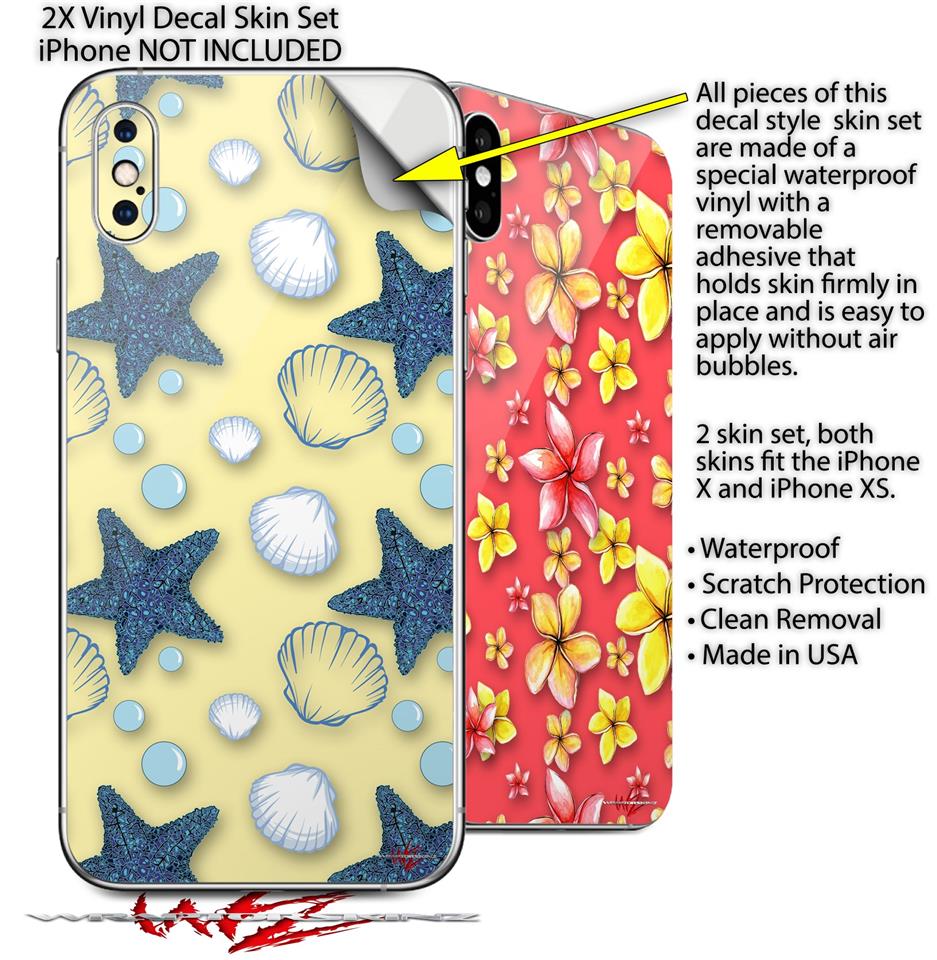 2 Decal style Skin Wraps set for Apple iPhone X and XS Starfish and Sea Shells Yellow Sunshine