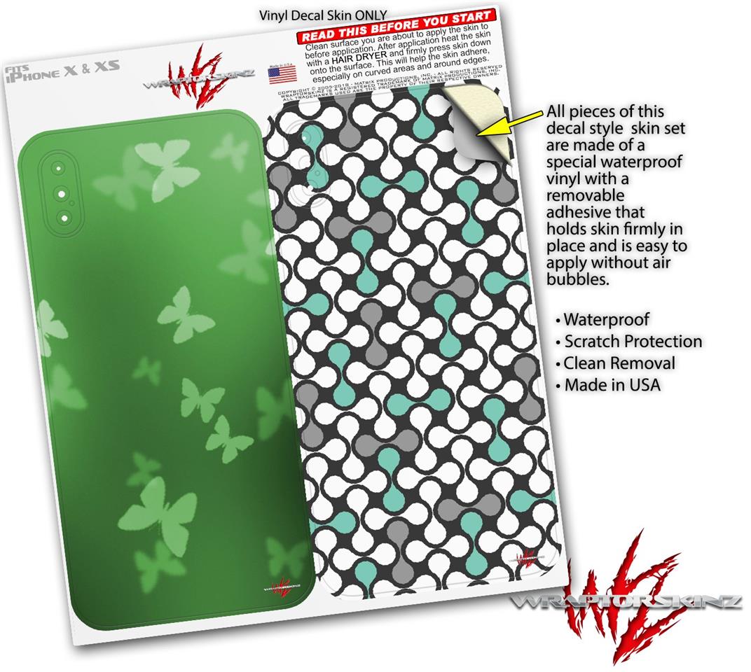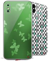 2 Decal style Skin Wraps set for Apple iPhone X and XS Bokeh Butterflies Green