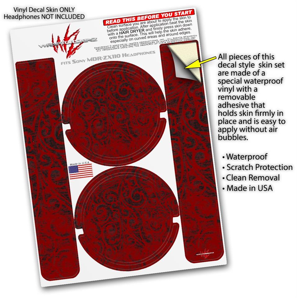 Decal style Skin Wrap for Sony MDR ZX110 Headphones Folder Doodles Red Dark (HEADPHONES NOT INCLUDED)