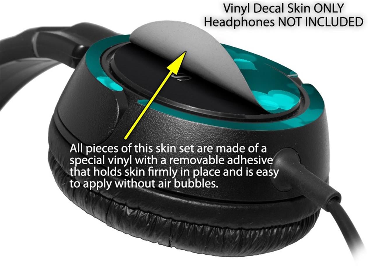 Decal style Skin Wrap for Sony MDR ZX110 Headphones Bokeh Hearts Neon Teal (HEADPHONES NOT INCLUDED)