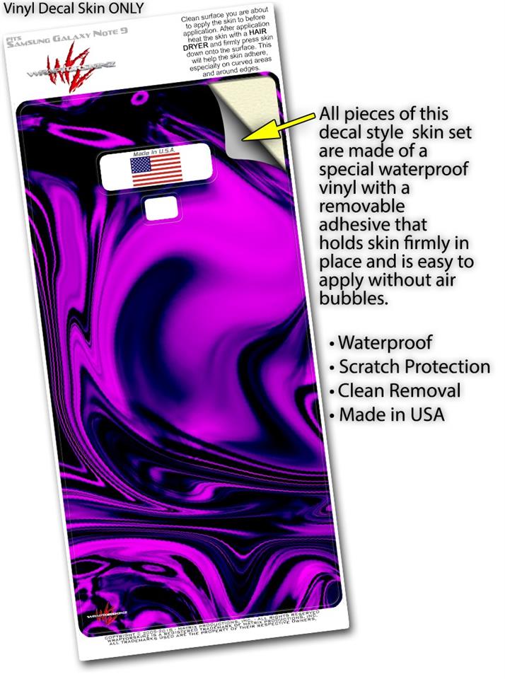 WraptorSkinz® skin wraps for the Samsung Galaxy Note 9 are printed using superb photo quality designs and vibrant colors printed with special fade resistant inks that last even in direct sun for years. WraptorSkinz are a composite of two layers of commercial grade materials. The bottom layer is a soft, flexible vinyl with a special removable adhesive that is easily positioned, applied without air bubbles. Next, we print the bottom layer with UV protected, fade resistant inks that deliver superb photo quality designs in vibrant colors. Finally, we bond a professional grade laminate over the entire Galaxy Note 9 skin adding a glossy protective finish. This product is not affiliated with or endorsed by Samsung.