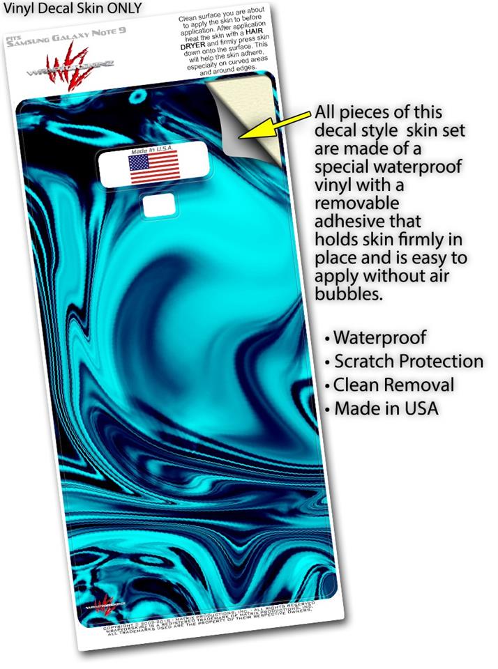 Decal style Skin Wrap compatible with Samsung Galaxy Note 9 Liquid Metal Chrome Neon Blue