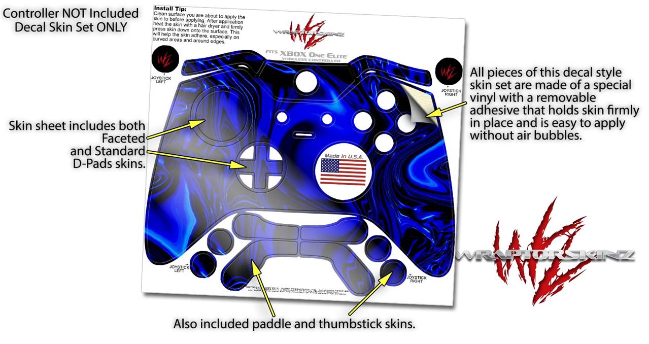 Decal Skin compatible with Microsoft XBOX One ELITE Wireless ControllerLiquid Metal Chrome Royal Blue