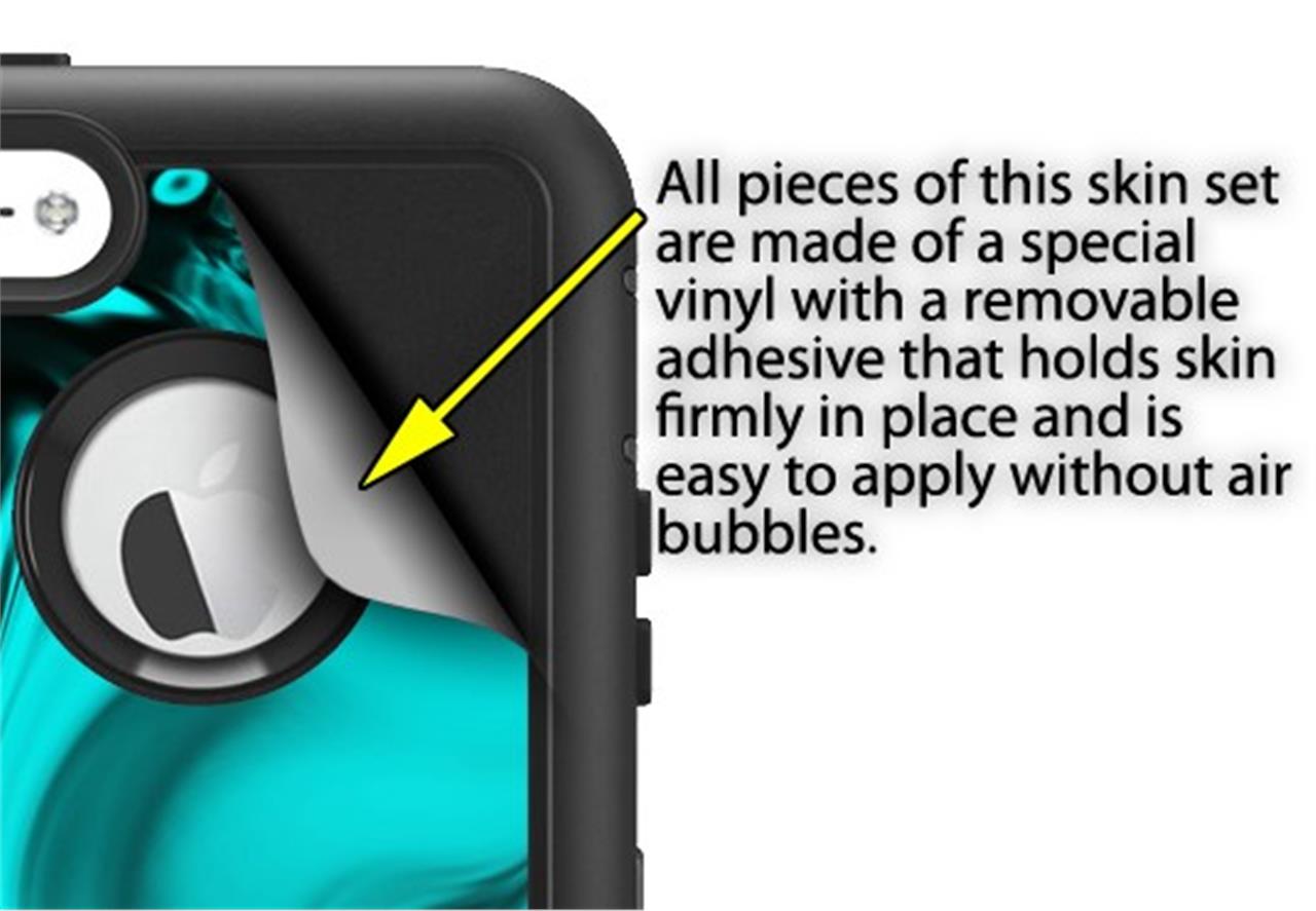 WraptorSkinz® are self adhering vinyl decal style skins and are a great way to add a new look to your existing protective case. WraptorSkinz® are a composite of two layers of commercial grade materials. The bottom layer is a soft, flexible vinyl with a special removable adhesive that is easily positioned, applied without air bubbles. Next we print the bottom layer with UV protected, fade resistant inks that deliver superb photo quality designs in vibrant colors. Finally we bond a professional grade laminate over the entire skin adding a glossy protective finish.
