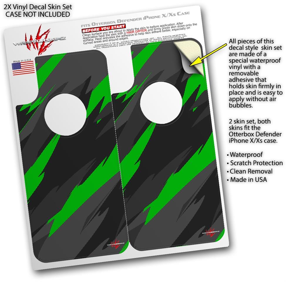 2x Decal style Skin Wrap Set compatible with Otterbox Defender iPhone X and Xs Case - Jagged Camo Green (CASE NOT INCLUDED)
