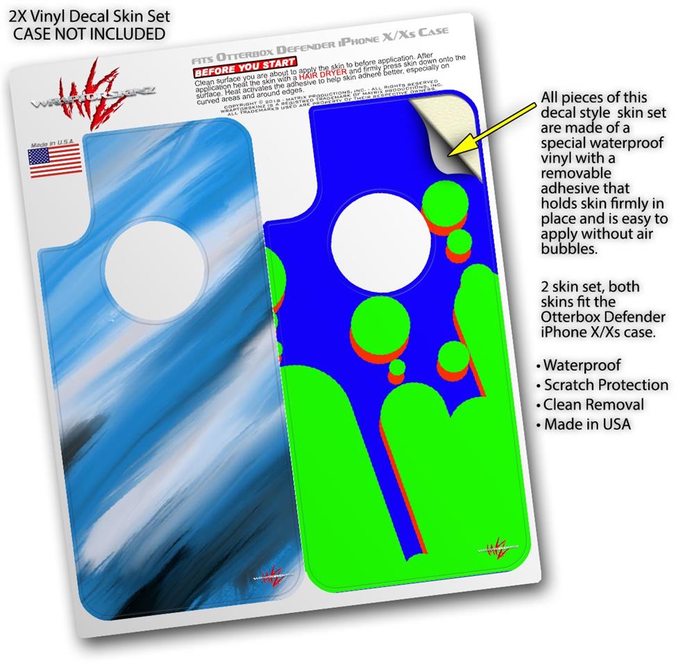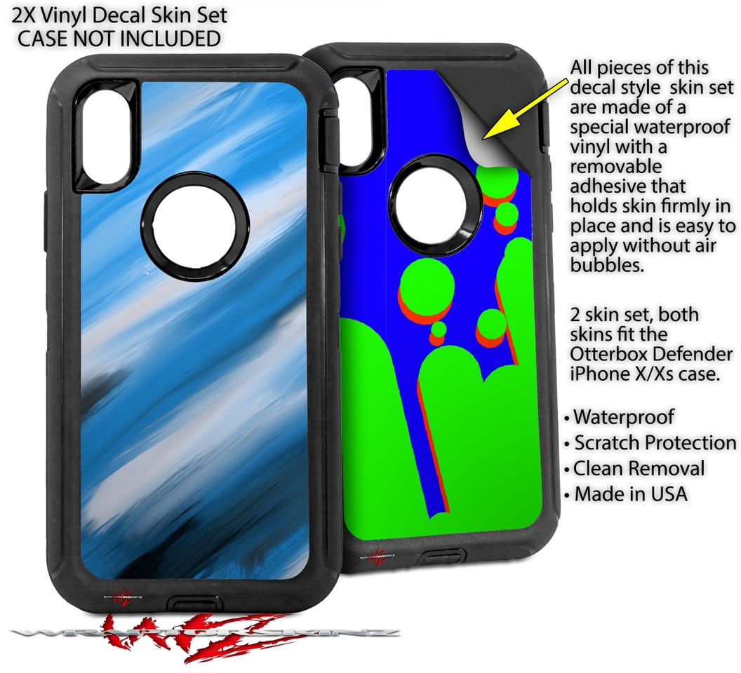 2x Decal style Skin Wrap Set compatible with Otterbox Defender iPhone X and Xs Case - Paint Blend Blue (CASE NOT INCLUDED)