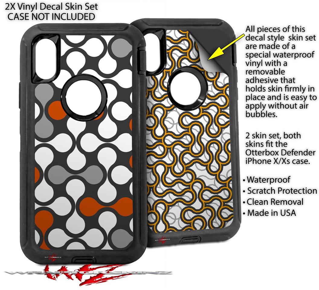 2x Decal style Skin Wrap Set compatible with Otterbox Defender iPhone X and Xs Case - Locknodes 05 Burnt Orange (CASE NOT INCLUDED)