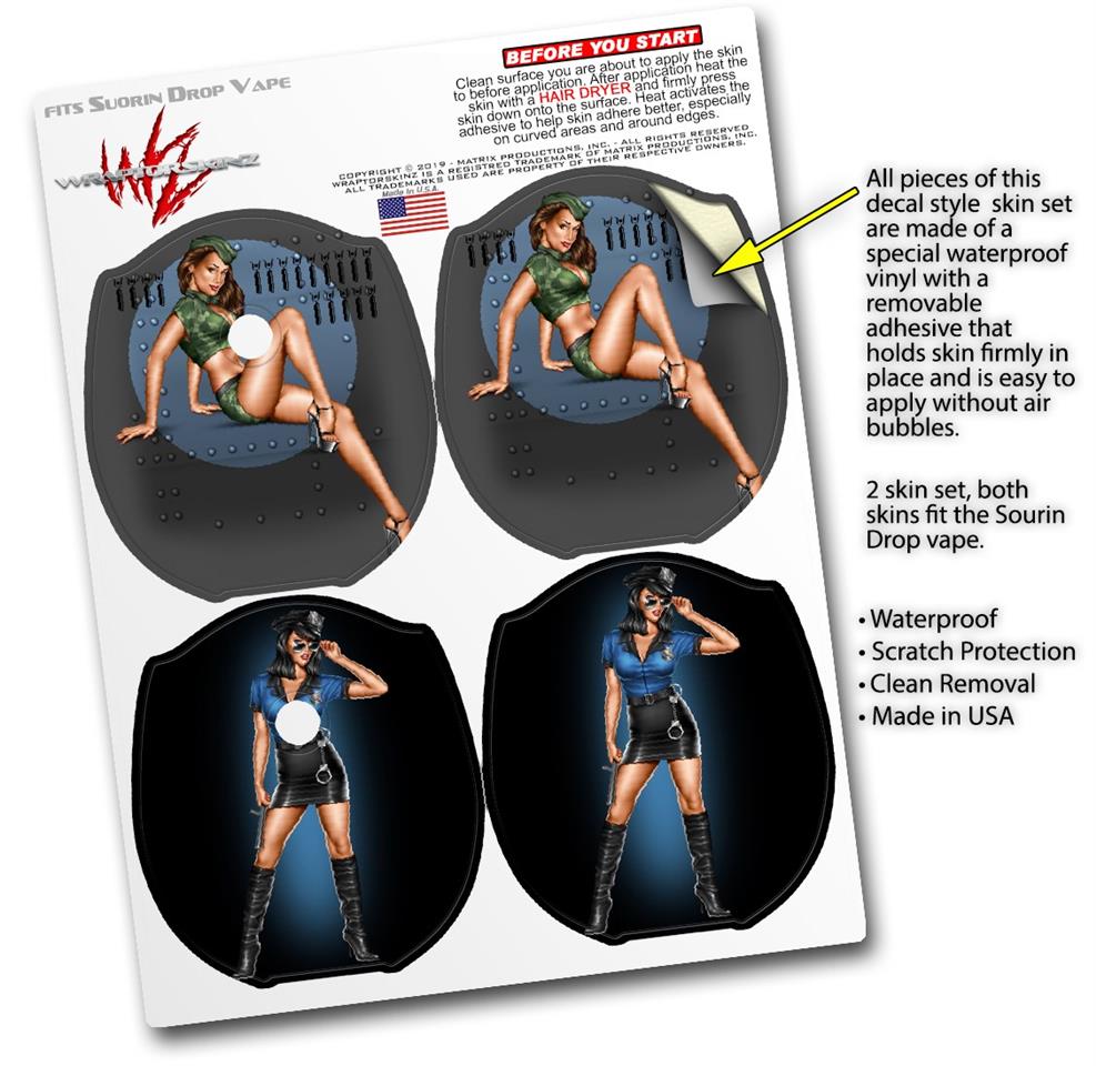 Skin Decal Wrap 2 Pack compatible with Suorin Drop Bomber Pin Up Girl VAPE NOT INCLUDED