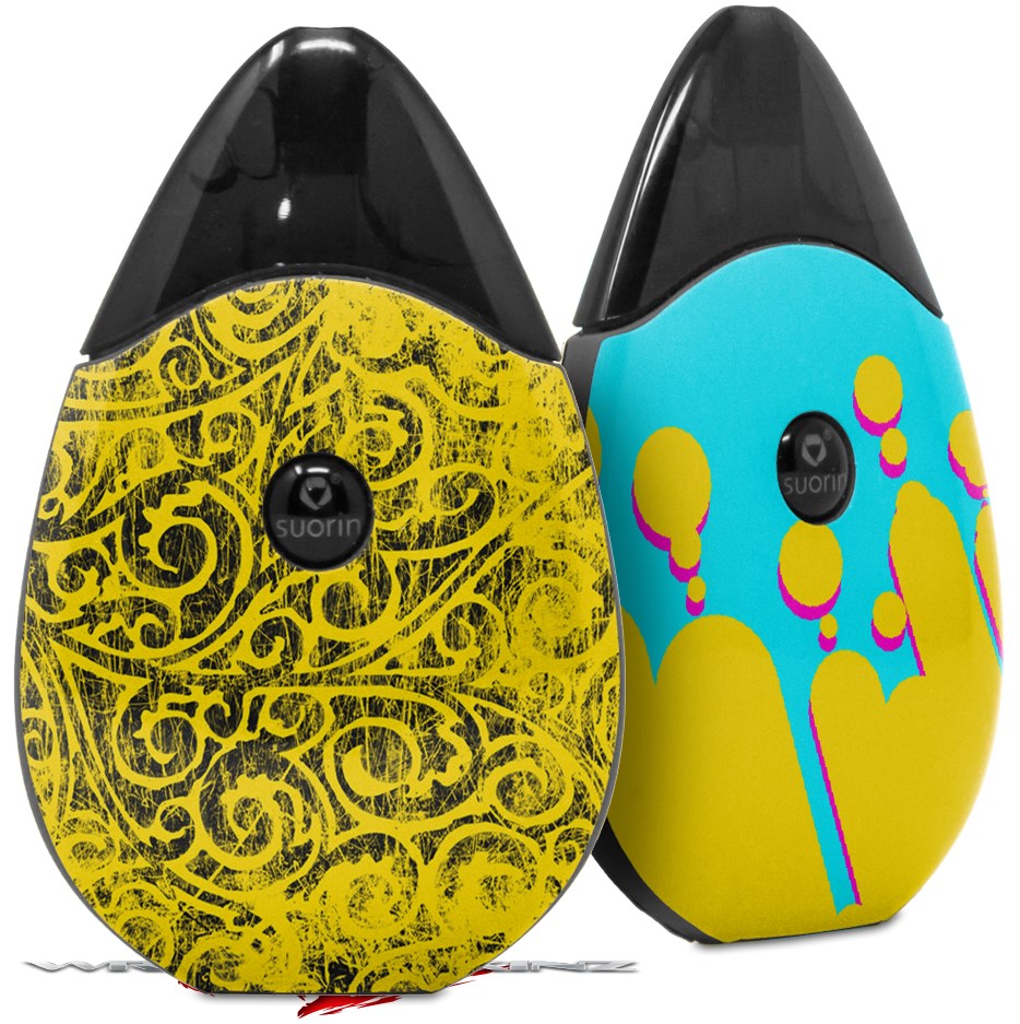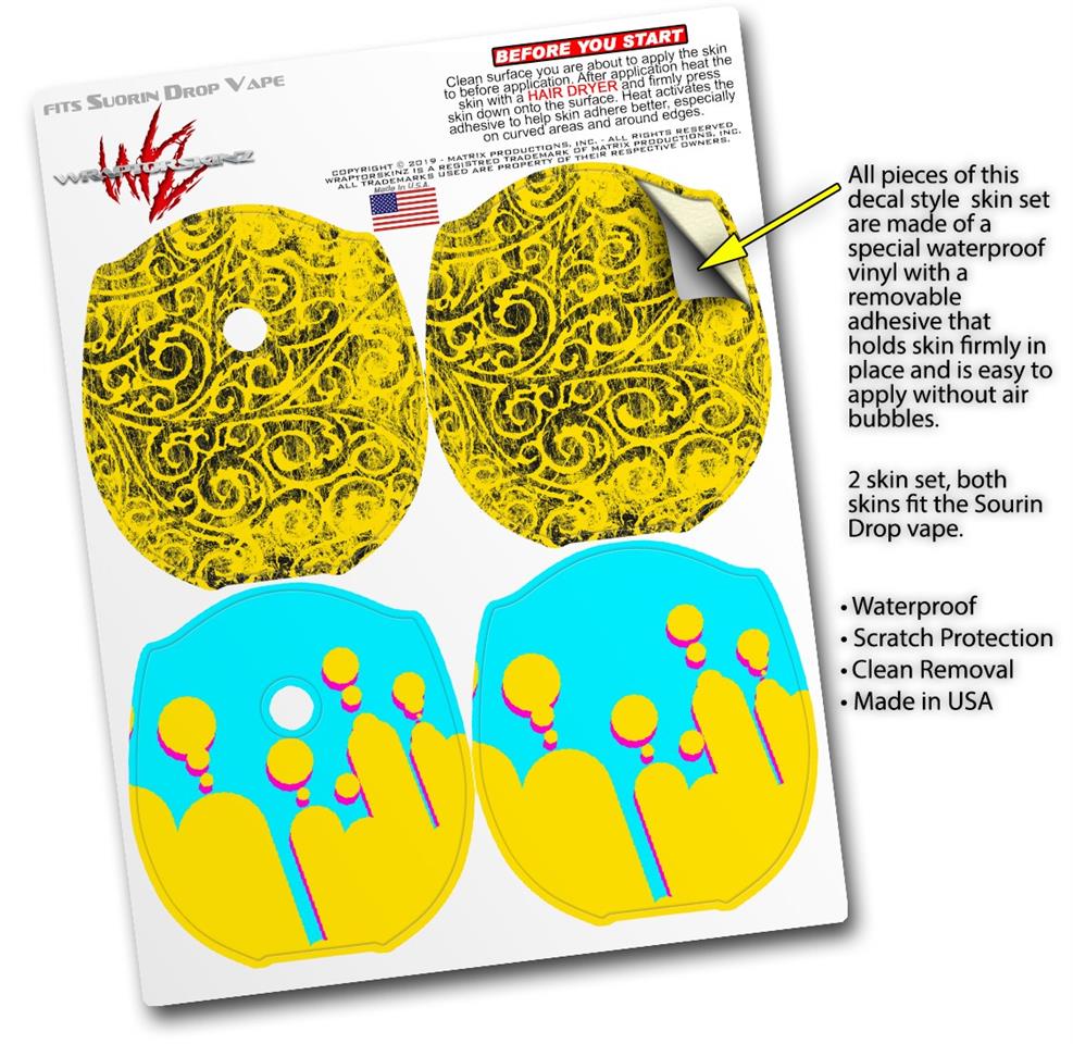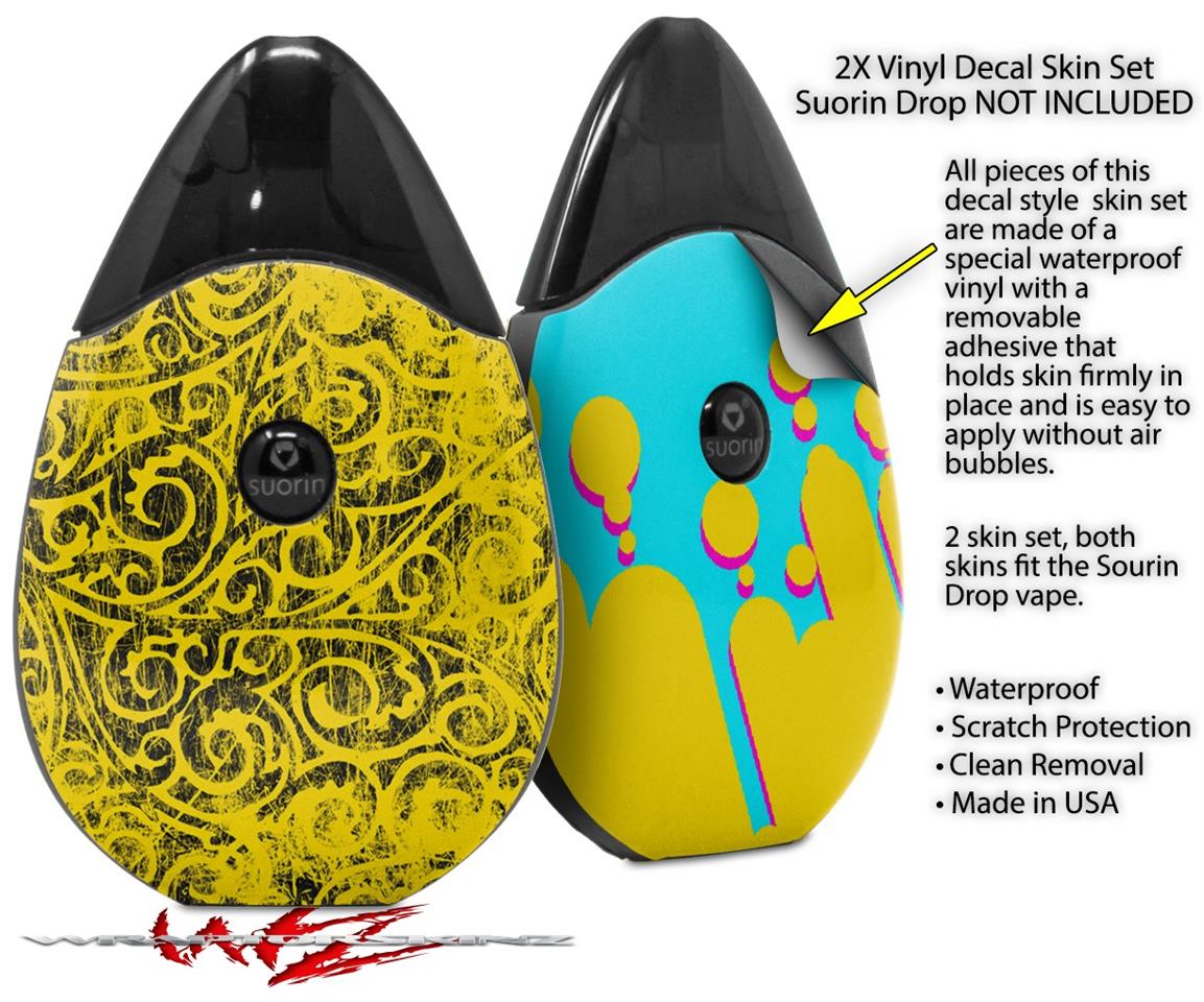 Skin Decal Wrap 2 Pack compatible with Suorin Drop Folder Doodles Yellow VAPE NOT INCLUDED
