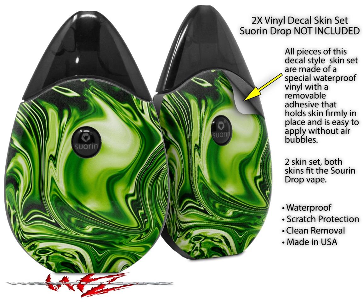 Skin Decal Wrap 2 Pack compatible with Suorin Drop Liquid Metal Chrome Neon Green VAPE NOT INCLUDED
