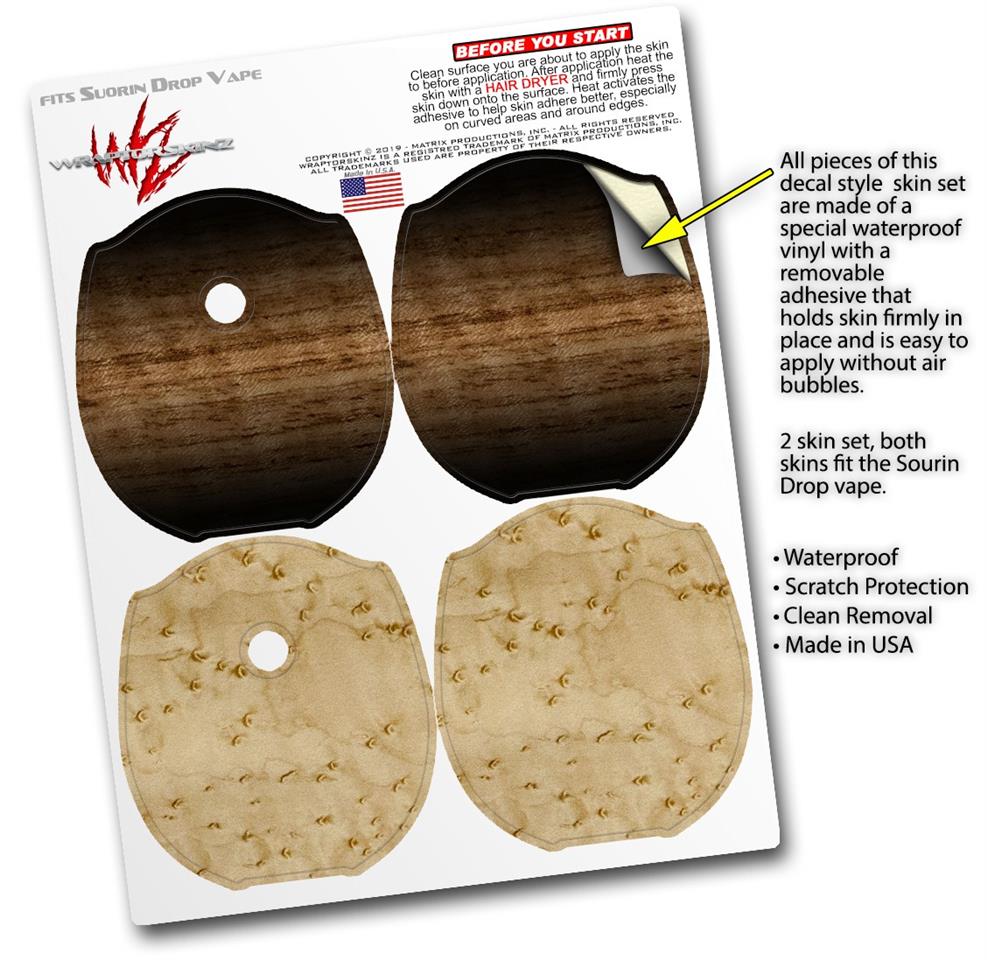 Skin Decal Wrap 2 Pack compatible with Suorin Drop Exotic Wood Pommele Sapele Burst Black VAPE NOT INCLUDED