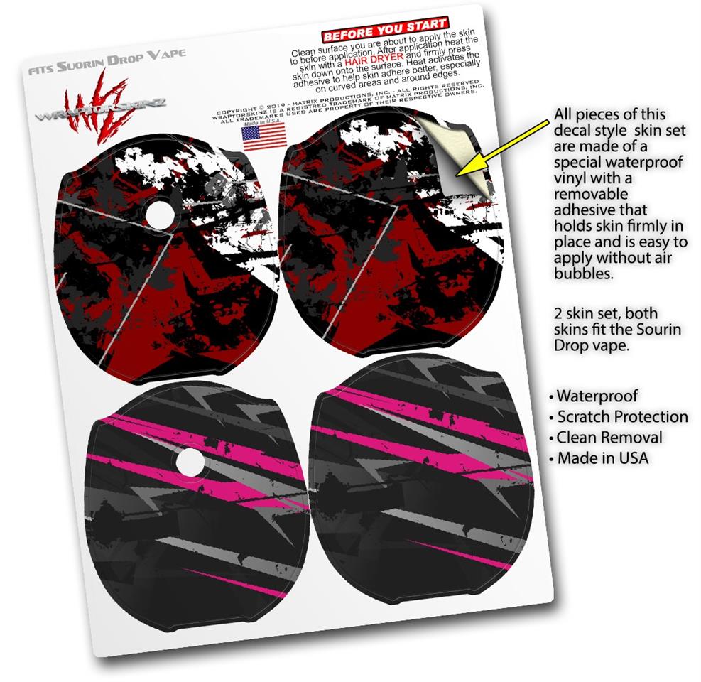 Skin Decal Wrap 2 Pack compatible with Suorin Drop Baja 0003 Red Dark VAPE NOT INCLUDED