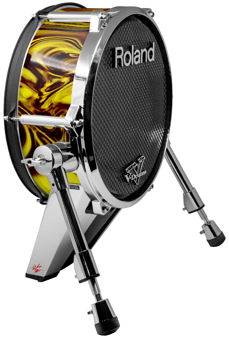 Skin Wrap works with Roland vDrum Shell KD-140 Kick Bass Drum Liquid Metal Chrome Yellow Wide (DRUM NOT INCLUDED)