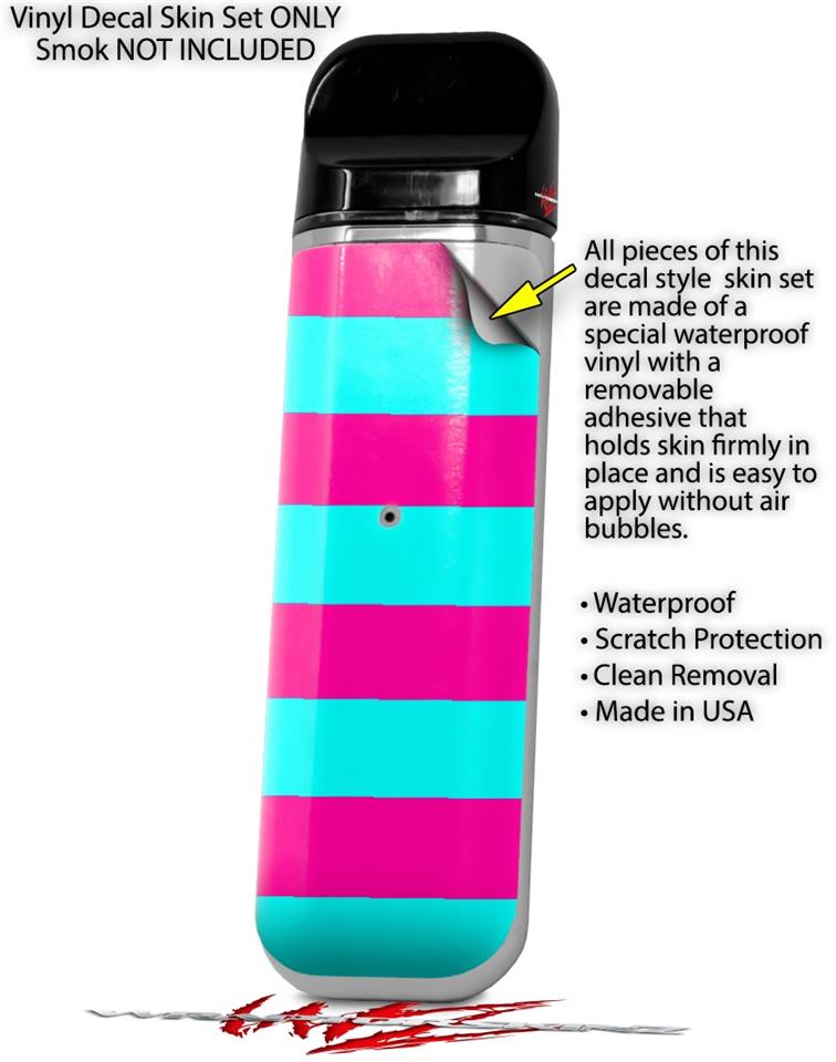 Skin Decal Wrap 2 Pack for Smok Novo v1 Psycho Stripes Neon Teal and Hot Pink VAPE NOT INCLUDED