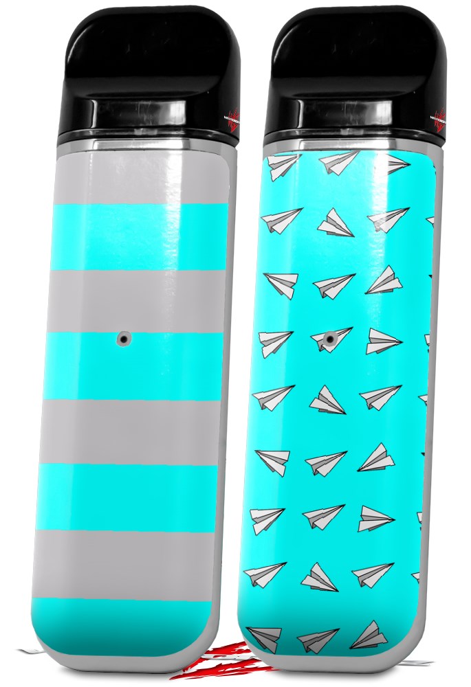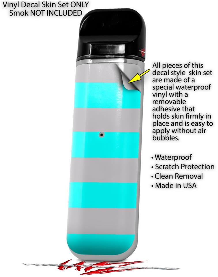 Skin Decal Wrap 2 Pack for Smok Novo v1 Psycho Stripes Neon Teal and Gray VAPE NOT INCLUDED