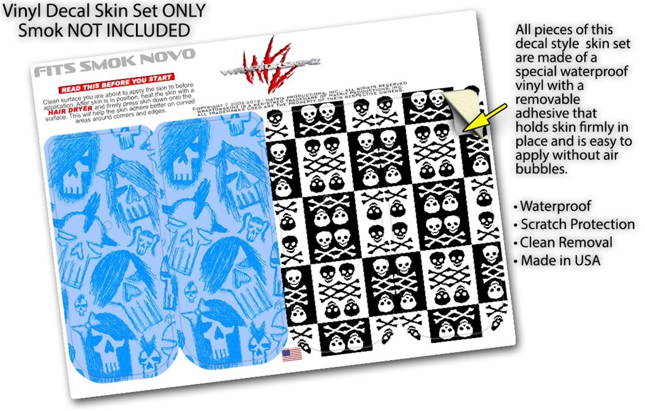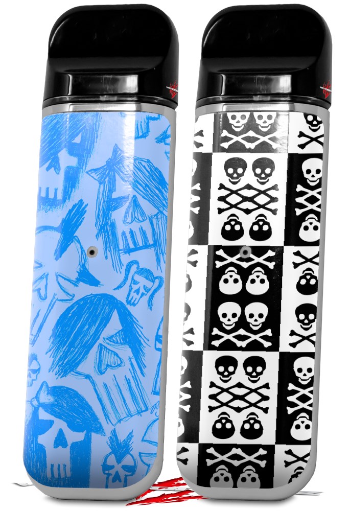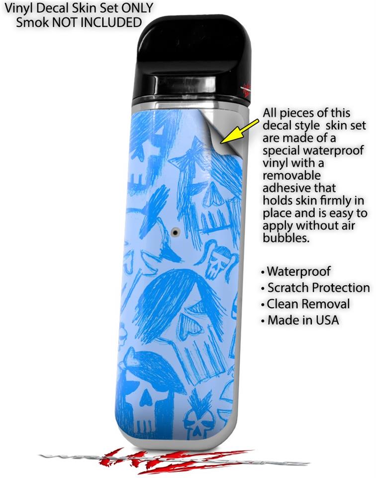 Skin Decal Wrap 2 Pack for Smok Novo v1 Skull Sketches Blue VAPE NOT INCLUDED