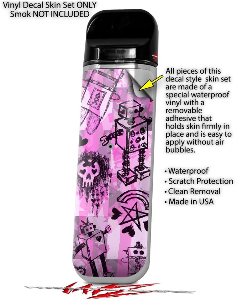 Skin Decal Wrap 2 Pack for Smok Novo v1 Scene Kid Sketches Pink VAPE NOT INCLUDED