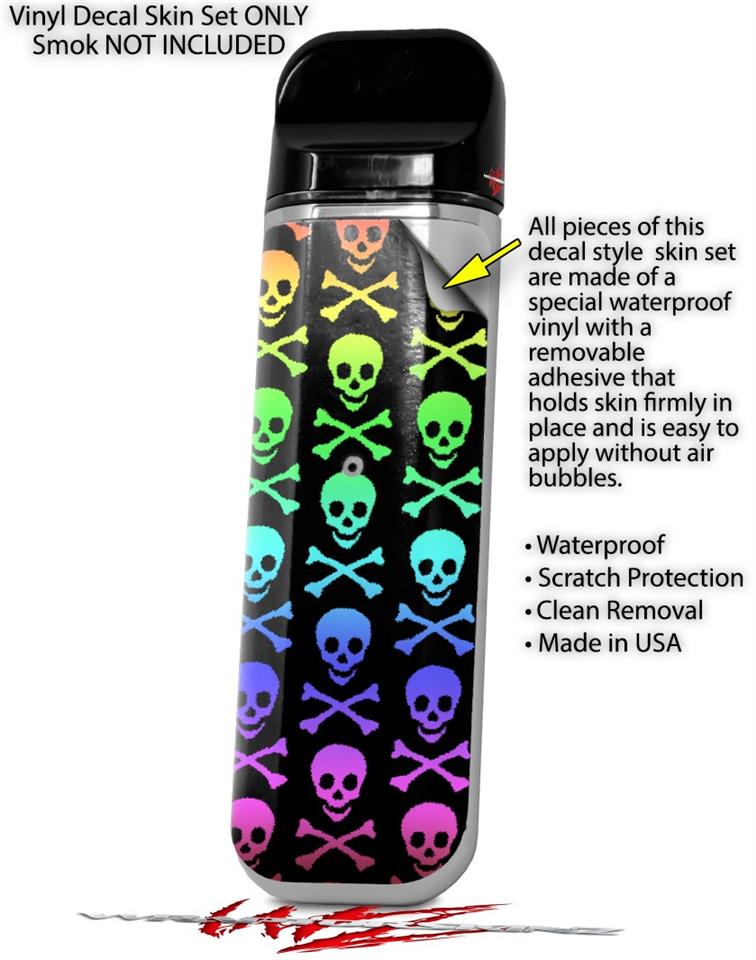 Skin Decal Wrap 2 Pack for Smok Novo v1 Skull and Crossbones Rainbow VAPE NOT INCLUDED
