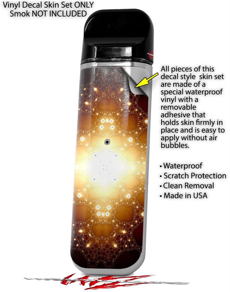 WraptorSkinz® skin wraps are printed using superb photo quality designs and vibrant colors printed with special fade resistant inks that last even in direct sun for years. WraptorSkinz are a composite of two layers of commercial grade materials. The bottom layer is a soft, flexible vinyl with a special removable adhesive that is easily positioned, applied without air bubbles. Next we print the bottom layer with UV protected, fade resistant inks that deliver superb photo quality designs in vibrant colors. Last, we bond a professional grade laminate over the entire skin adding a glossy protective finish. This product is not affiliated with or endorsed by the Smok brand.
