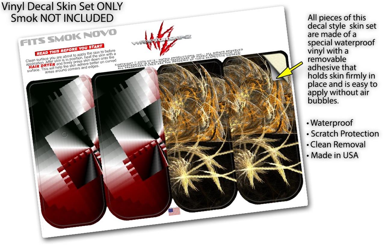 WraptorSkinz® skin wraps are printed using superb photo quality designs and vibrant colors printed with special fade resistant inks that last even in direct sun for years. WraptorSkinz are a composite of two layers of commercial grade materials. The bottom layer is a soft, flexible vinyl with a special removable adhesive that is easily positioned, applied without air bubbles. Next we print the bottom layer with UV protected, fade resistant inks that deliver superb photo quality designs in vibrant colors. Last, we bond a professional grade laminate over the entire skin adding a glossy protective finish. This product is not affiliated with or endorsed by the Smok brand.