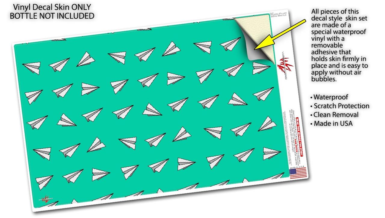 Skin Wrap Decal compatible with Hydro Flask Wide Mouth Bottle 32oz Paper Planes Turquoise (BOTTLE NOT INCLUDED)