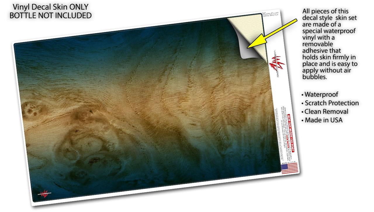 Skin Wrap Decal compatible with Hydro Flask Wide Mouth Bottle 32oz Exotic Wood White Oak Burl Burst Deep Blue (BOTTLE NOT INCLUDED)