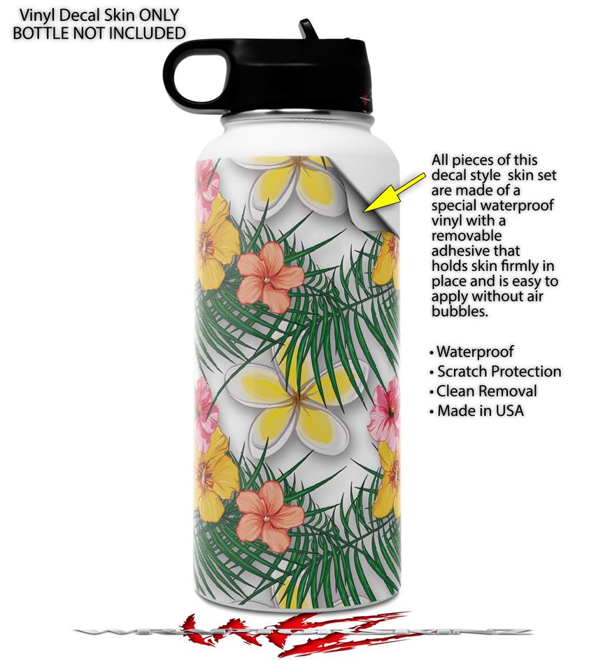 Skin Wrap Decal compatible with Hydro Flask Wide Mouth Bottle 32oz Beach Flowers 02 White (BOTTLE NOT INCLUDED)